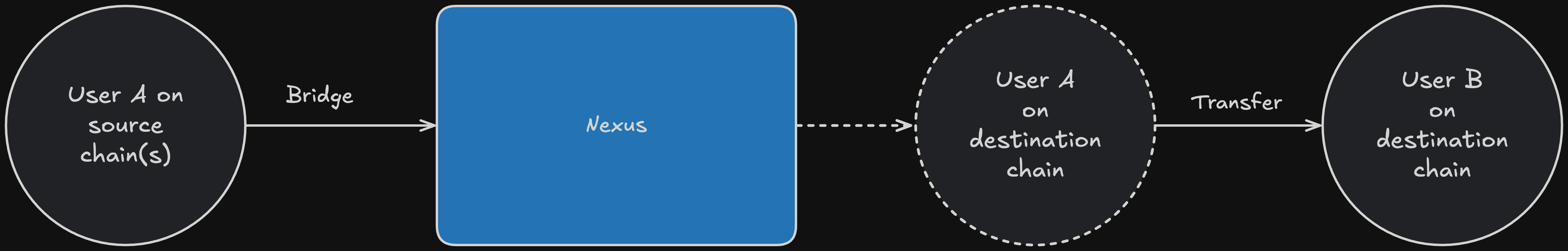 In Nexus, apart from crosschain swaps, users can do Bridge, Transfer, Bridge & Execute which uses Nexus chain abstraction (aka Bridge Methods).