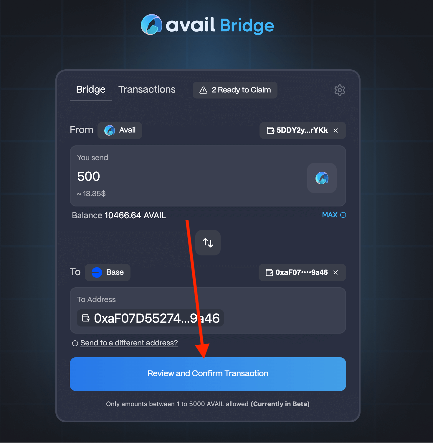 4. Or vice-versa, if you want to bridge from Base to Avail.