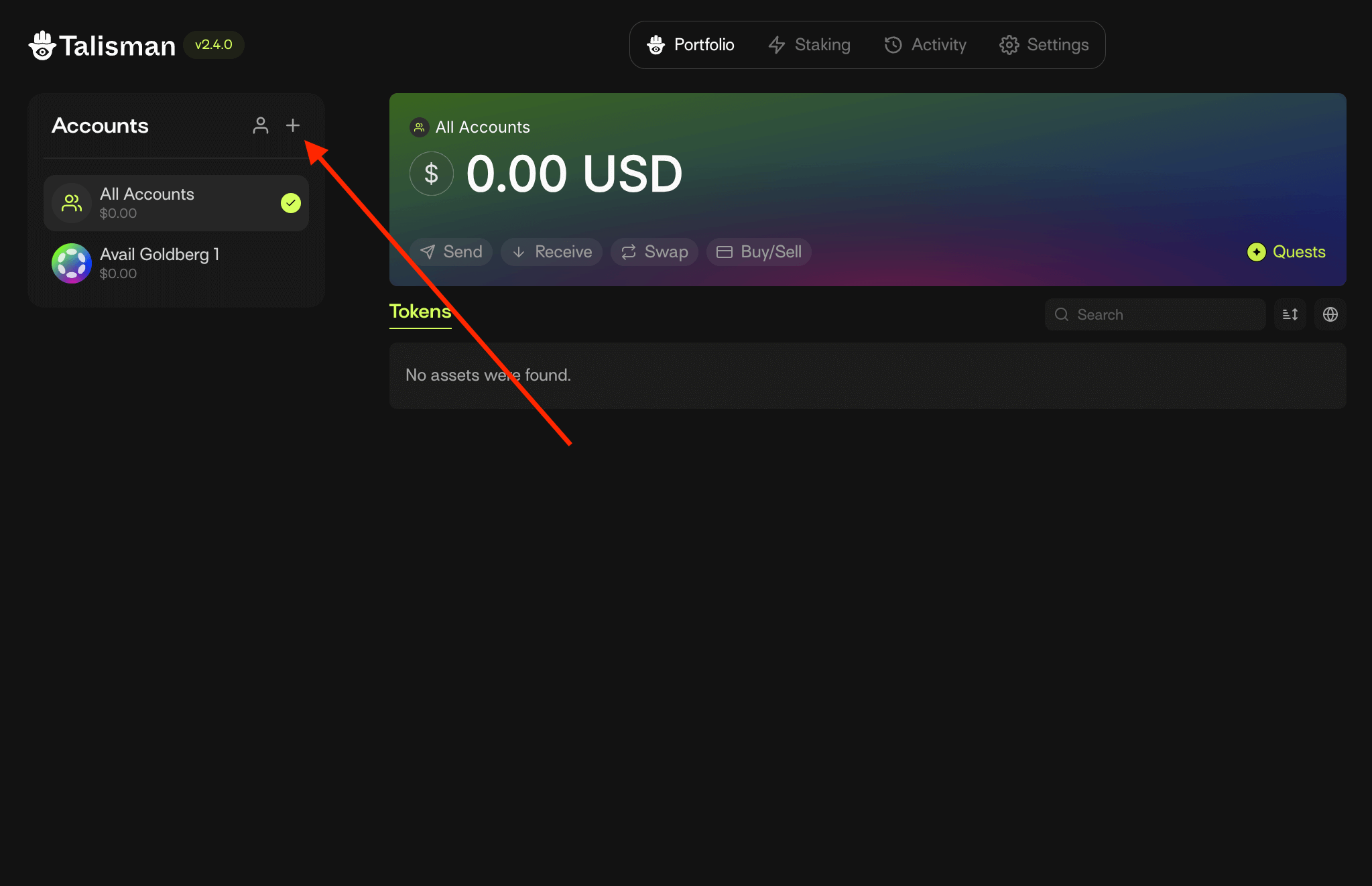 1. This is what the accounts tab should look like after you’ve derived a hardware account: