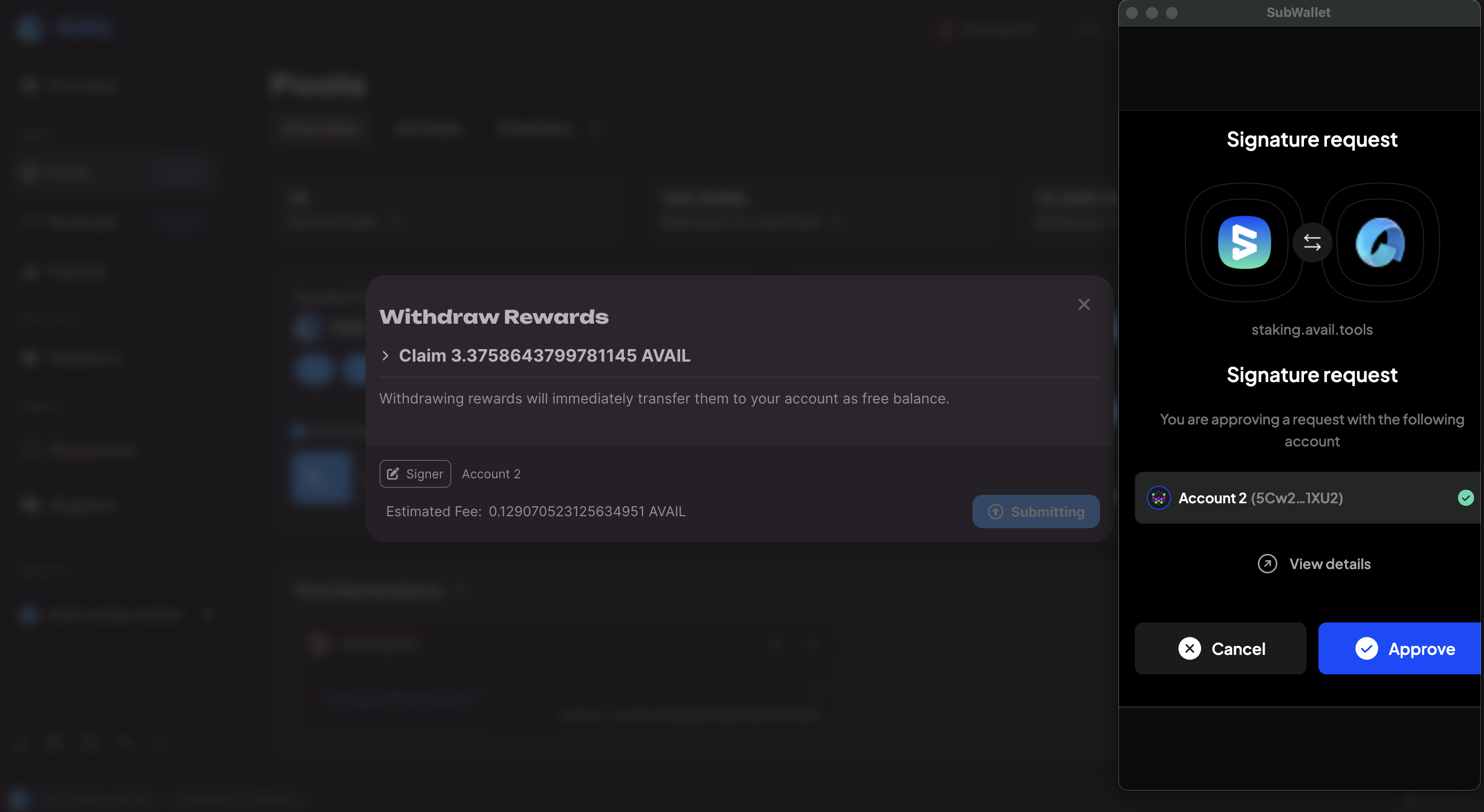 - Duration: Once the unbonding request is made, it enters a cooldown period. The exact duration of this period is specific to Avail and may differ from other platforms.