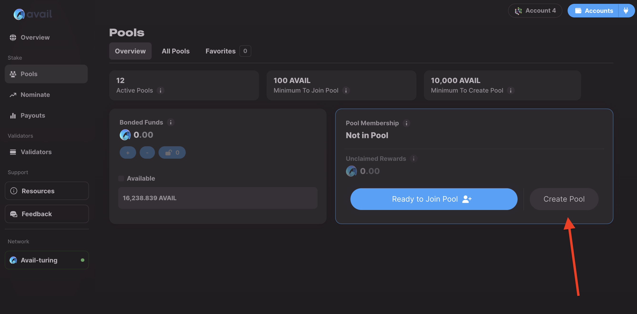 The only prerequisite for creating a new nomination pool on Avail DA is that you have an Avail DA